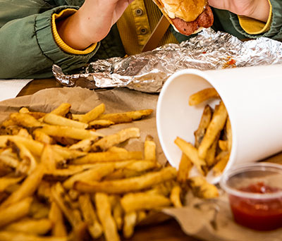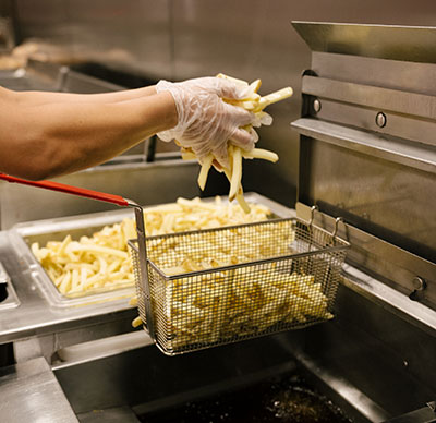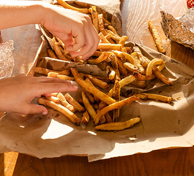 A lot of thought and craft goes into our fries. In addition to meticulously sourcing our potatoes, we hand-cut them inside our restaurants and use 100% refined peanut oil as part of our three-part frying process.